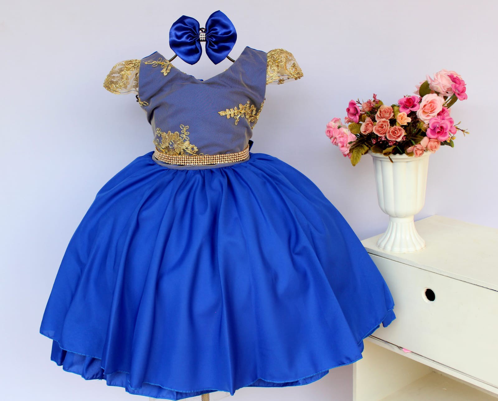 Vestido Azul Royal Luxo Detalhe Dourado