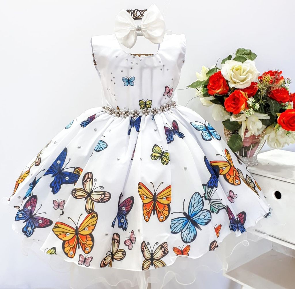 Confeccionado em tecido misto possui forro em poliéster e algodão que não encomoda a criança e proporciona um caimento incrível e sofisticado, possui gola redonda, comprimento médio, mangas curtas, possui elástico nas costas para melhor ajuste, acabamento com lindo laço na parte posterior do vestido.