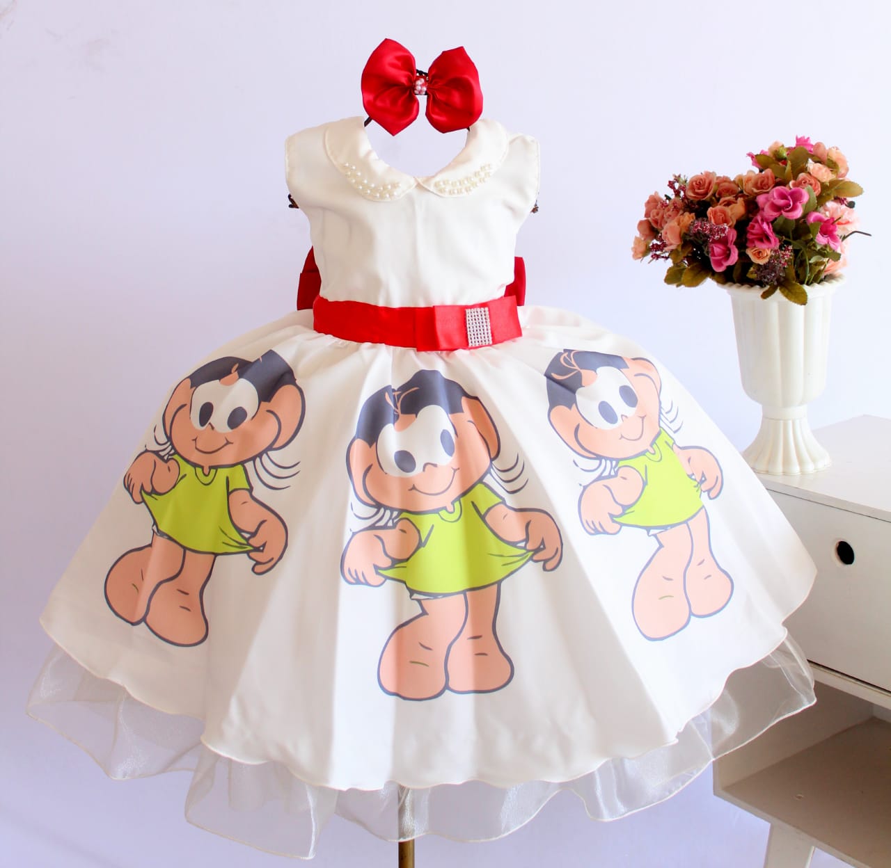 Confeccionado em tecido misto possui forro em poliéster e algodão que não encomoda a criança e proporciona um caimento incrível e sofisticado, possui gola redonda, comprimento médio, mangas curtas, possui elástico nas costas para melhor ajuste, acabamento com lindo laço na parte posterior do vestido.