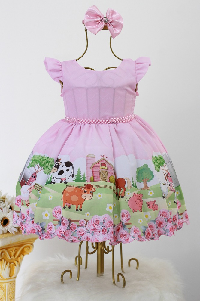 Confeccionado em tecido misto possui forro em poliéster e algodão que não encomoda a criança e proporciona um caimento incrível e sofisticado, possui gola redonda, comprimento médio, mangas curtas, possui elástico nas costas para melhor ajuste, acabamento com lindo laço na parte posterior do vestido.