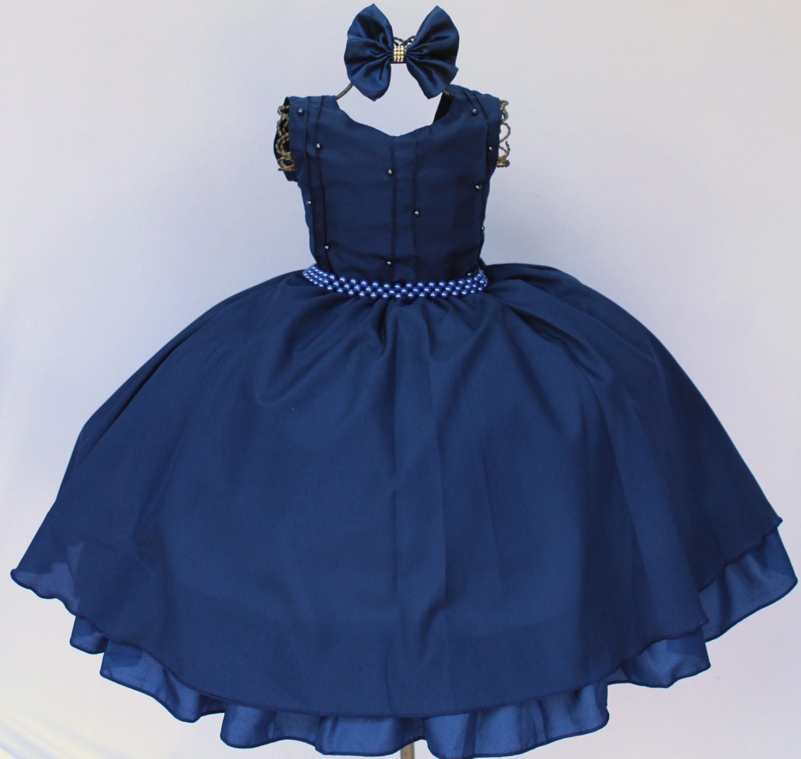 Confeccionado em tecido misto possui forro em poliéster e algodão que não encomoda a criança e proporciona um caimento incrível e sofisticado, possui gola redonda, comprimento médio, mangas curtas, possui elástico nas costas para melhor ajuste, acabamento com lindo laço na parte posterior do vestido.