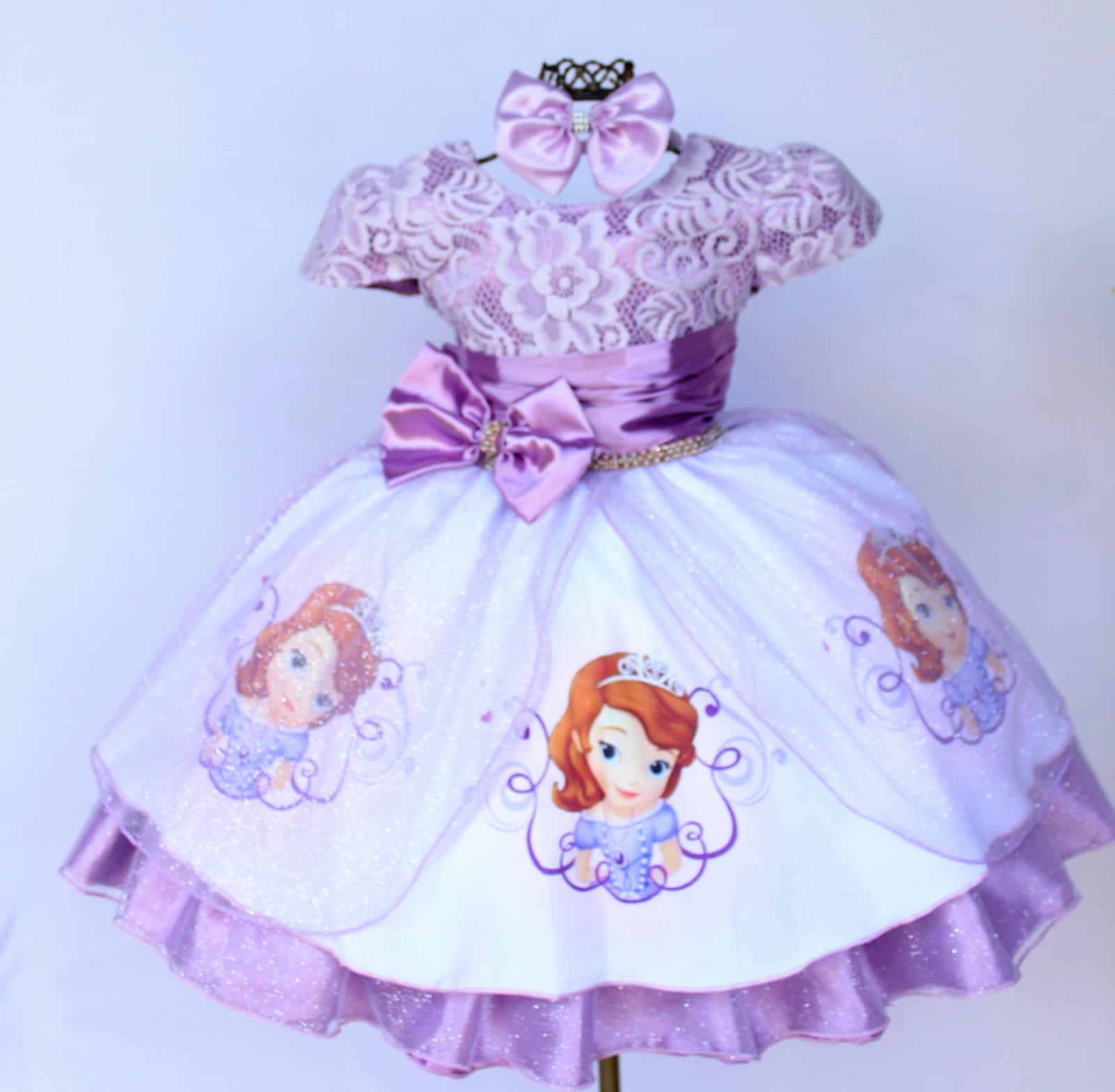 Vestido Infantil Festa Sofia Lilás Peito Renda