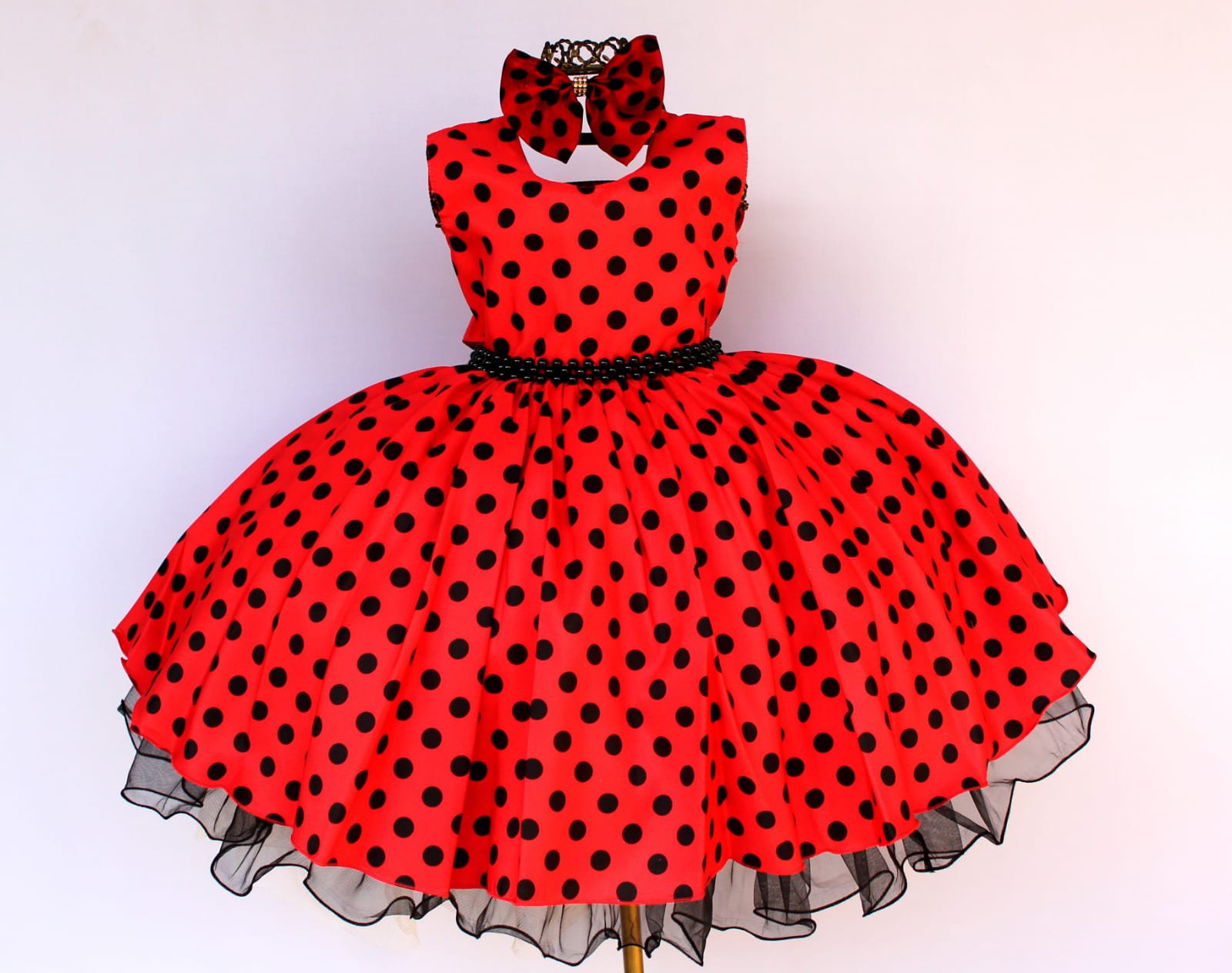 Confeccionado em tecido misto possui forro em poliéster e algodão que não encomoda a criança e proporciona um caimento incrível e sofisticado, possui gola redonda, comprimento médio, mangas curtas, possui elástico nas costas para melhor ajuste, acabamento com lindo laço na parte posterior do vestido.
