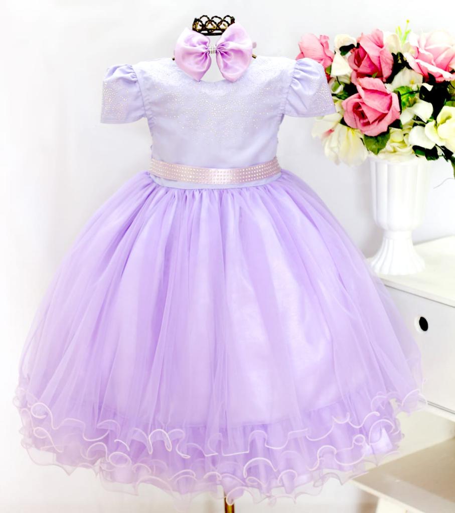 Confeccionado em tecido misto possui forro em poliéster e algodão que não encomoda a criança e proporciona um caimento incrível e sofisticado, possui gola redonda, comprimento médio, mangas curtas, possui elástico nas costas para melhor ajuste, acabamento com lindo laço na parte posterior do vestido.