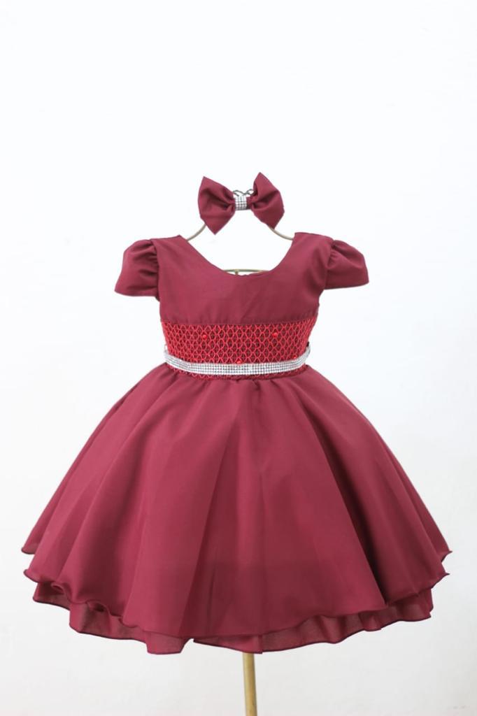 Confeccionado em tecido misto possui forro em poliéster e algodão que não encomoda a criança e proporciona um caimento incrível e sofisticado, possui gola redonda, comprimento médio, mangas curtas, possui elástico nas costas para melhor ajuste, acabamento com lindo laço na parte posterior do vestido.