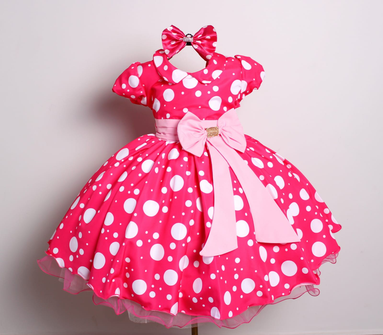 Confeccionado em tecido misto possui forro em poliéster e algodão que não encomoda a criança e proporciona um caimento incrível e sofisticado, possui gola redonda, comprimento médio, mangas curtas, possui elástico nas costas para melhor ajuste, acabamento com lindo laço na parte posterior do vestido.