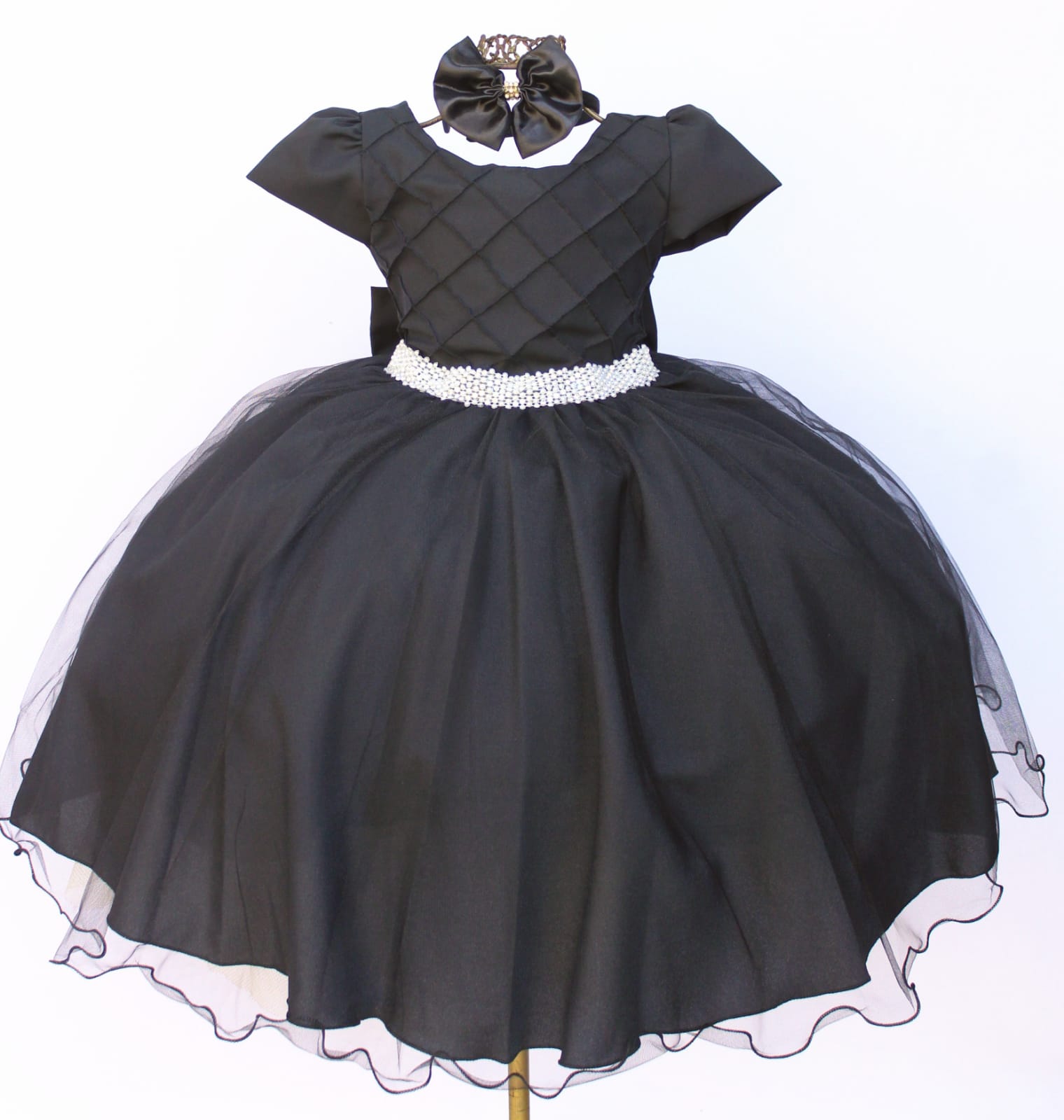 Confeccionado em tecido misto possui forro em poliéster e algodão que não encomoda a criança e proporciona um caimento incrível e sofisticado, possui gola redonda, comprimento médio, mangas curtas, possui elástico nas costas para melhor ajuste, acabamento com lindo laço na parte posterior do vestido.