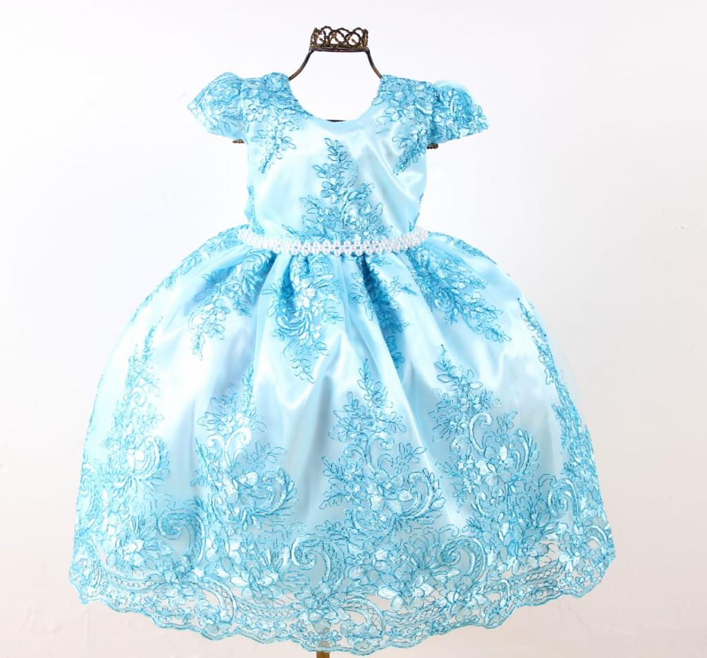 Confeccionado em tecido misto possui forro em poliéster e algodão que não encomoda a criança e proporciona um caimento incrível e sofisticado, possui gola redonda, comprimento médio, mangas curtas, possui elástico nas costas para melhor ajuste, acabamento com lindo laço na parte posterior do vestido.