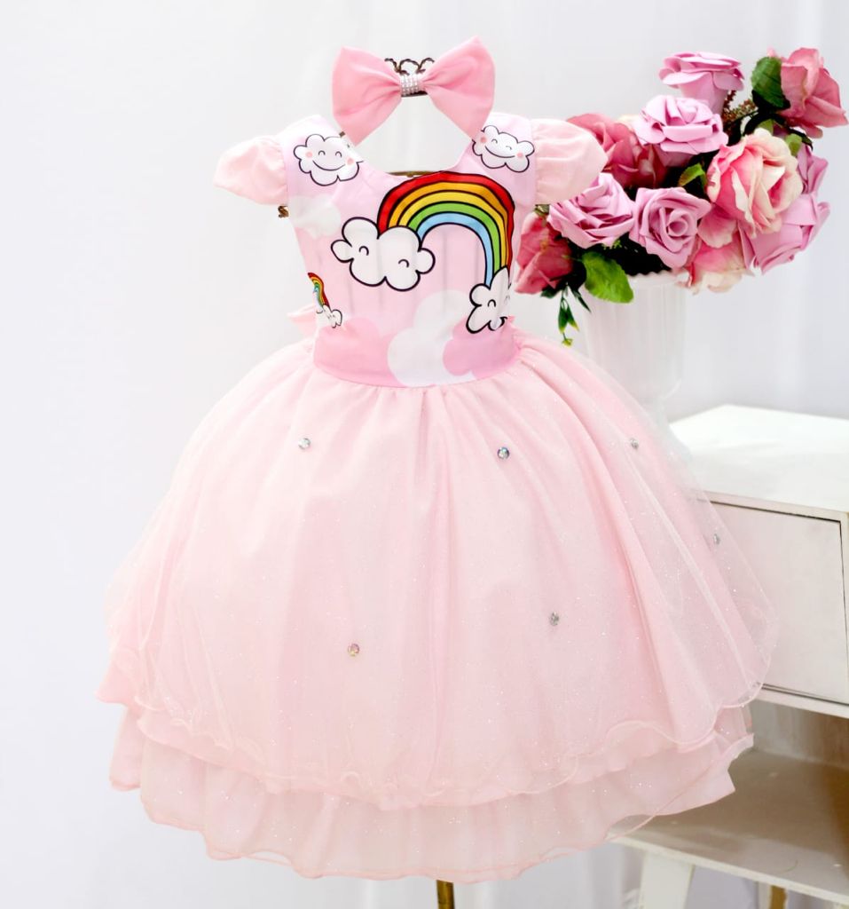 Confeccionado em tecido misto possui forro em poliéster e algodão que não encomoda a criança e proporciona um caimento incrível e sofisticado, possui gola redonda, comprimento médio, mangas curtas, possui elástico nas costas para melhor ajuste, acabamento com lindo laço na parte posterior do vestido.
