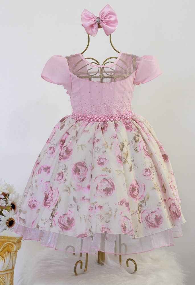 Confeccionado em tecido misto possui forro em poliéster e algodão que não encomoda a criança e proporciona um caimento incrível e sofisticado, possui gola redonda, comprimento médio, mangas curtas, possui elástico nas costas para melhor ajuste, acabamento com lindo laço na parte posterior do vestido.