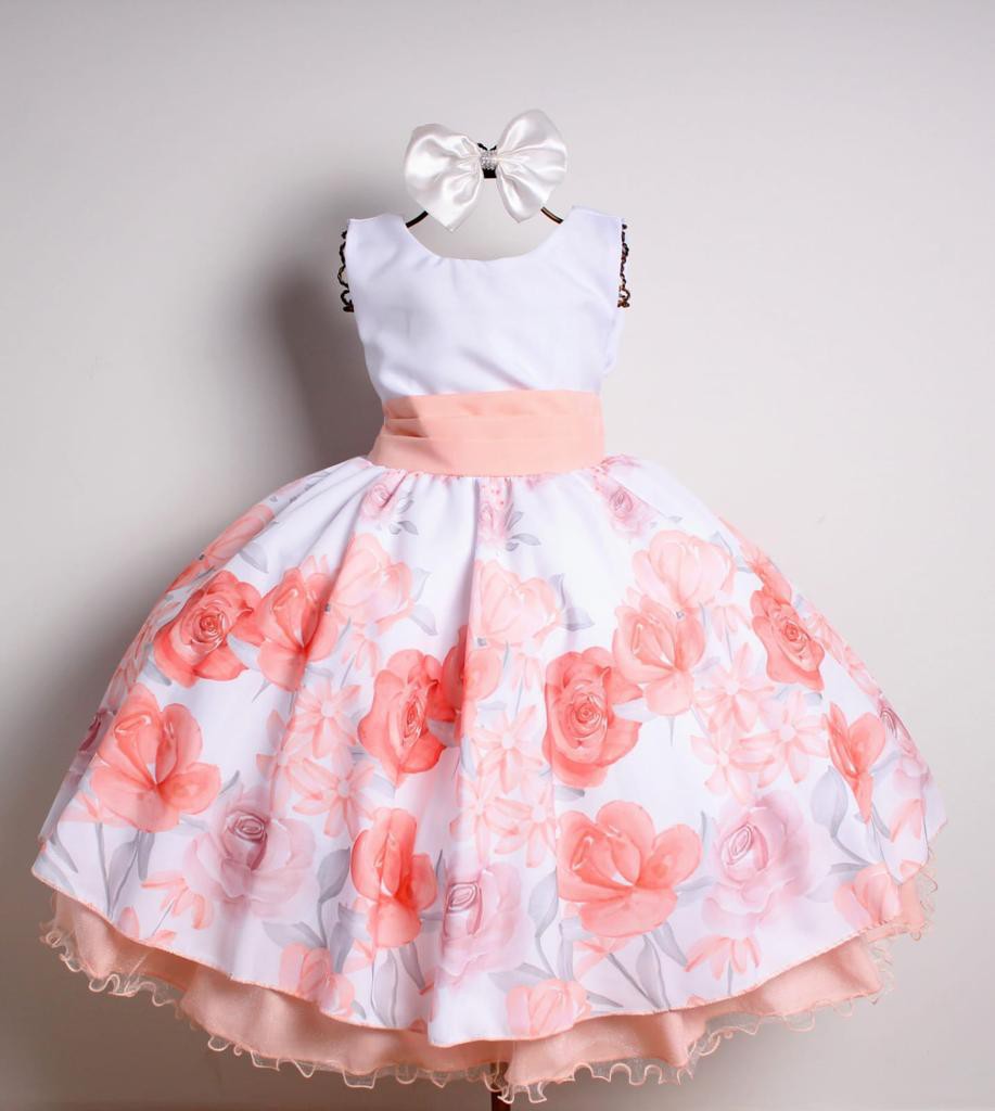 Confeccionado em tecido misto possui forro em poliéster e algodão que não encomoda a criança e proporciona um caimento incrível e sofisticado, possui gola redonda, comprimento médio, mangas curtas, possui elástico nas costas para melhor ajuste, acabamento com lindo laço na parte posterior do vestido.