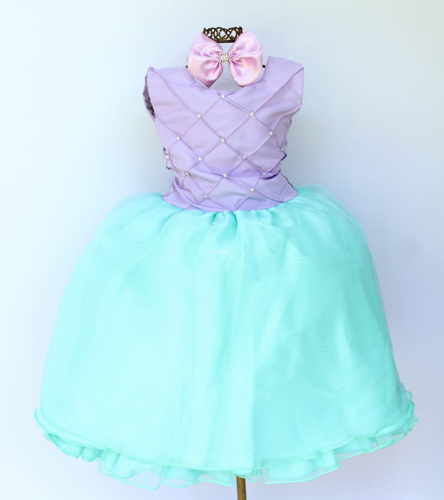 Confeccionado em tecido misto possui forro em poliéster e algodão que não encomoda a criança e proporciona um caimento incrível e sofisticado, possui gola redonda, comprimento médio, mangas curtas, possui elástico nas costas para melhor ajuste, acabamento com lindo laço na parte posterior do vestido.