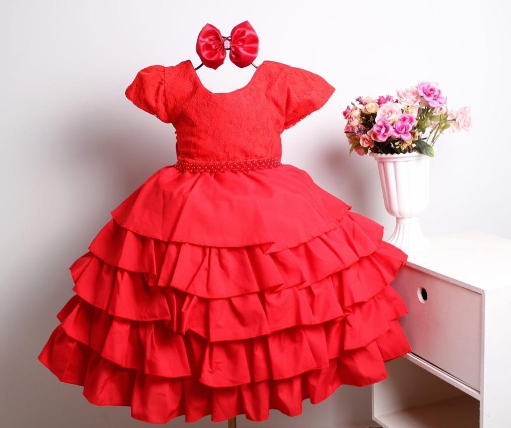 Confeccionado em tecido misto possui forro em poliéster e algodão que não encomoda a criança e proporciona um caimento incrível e sofisticado, possui gola redonda, comprimento médio, mangas curtas, possui elástico nas costas para melhor ajuste, acabamento com lindo laço na parte posterior do vestido.